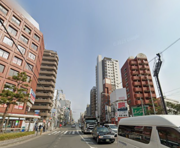 通行量の多い通りに面し、入口はガラス張りの自動ドアですので