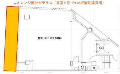 専有部分28.98坪に加え、なんとテラススペース(9.08坪)付き!