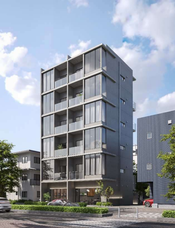 間もなく竣工予定のスタイリッシュなデザイナーズマンションの1階。