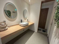 床暖房、壁面大型ミラー、フィッティングルーム、待合カウンターなど